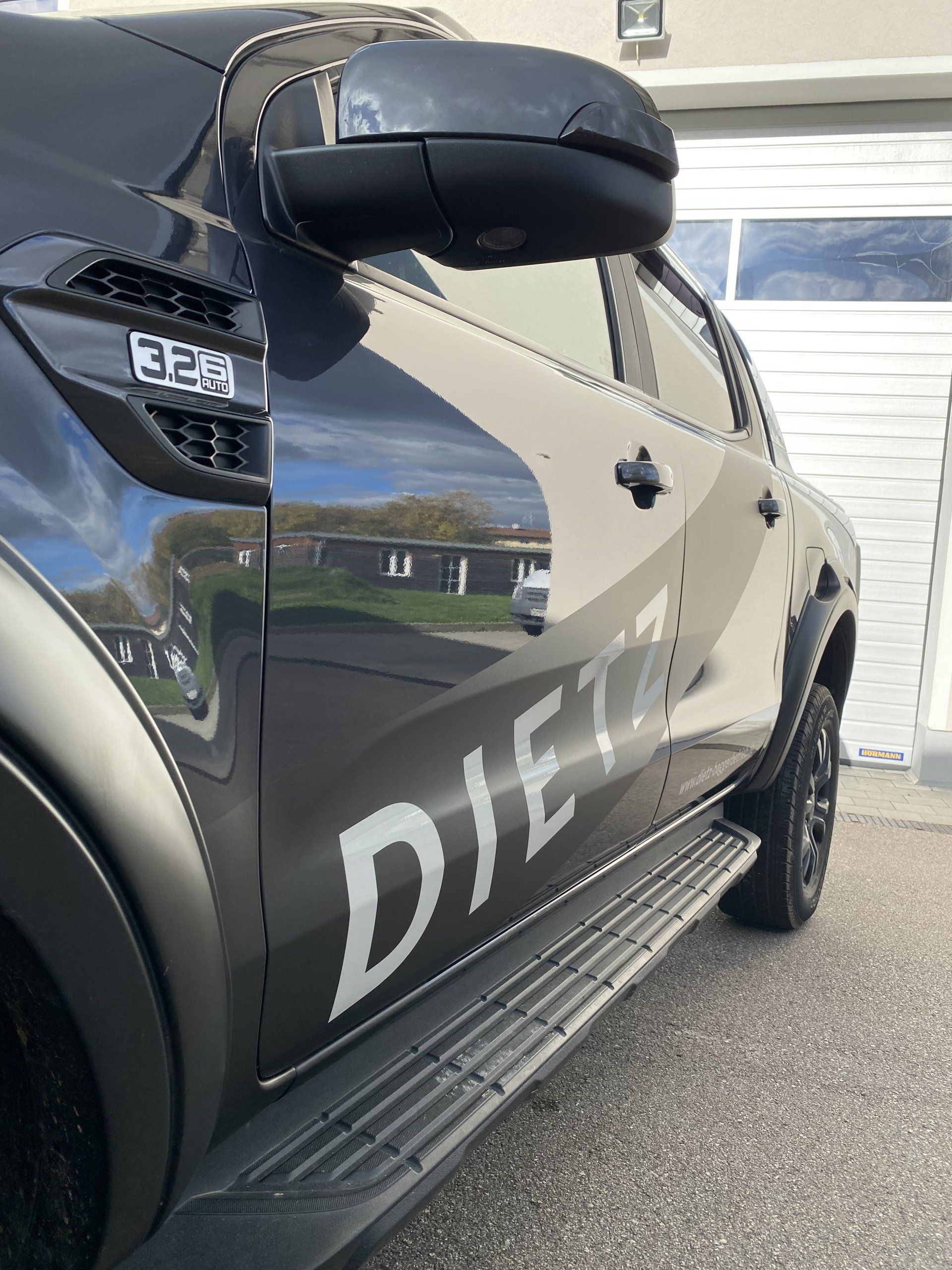 Um dem Corporate Design die Treue zu halten wurden gleich zwei Bestandsfahrzeuge von schwarz auf weiß komplett foliert. Mit den Folienplotts on Top erscheinen die Fahrzeuge im komplett neuen "Outfit". Wir finden es steht ihnen :-)